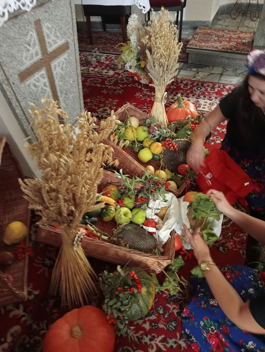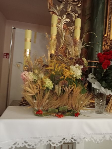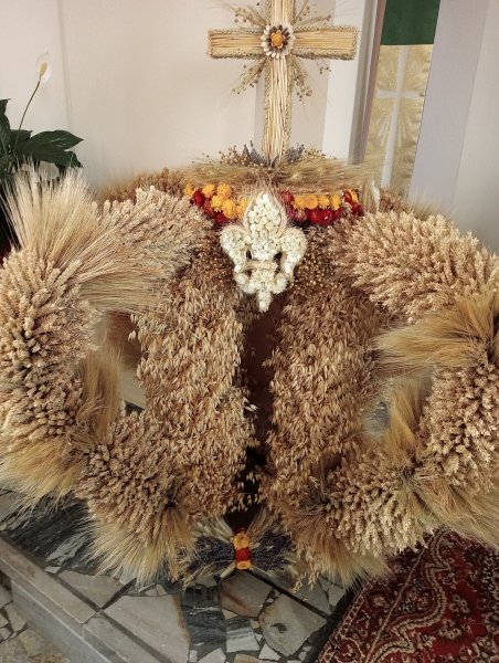 w DNIU 31 SIERPNIA 2025 R. W KOŚCIELE W JĘDRZYCHOWIE PARAFIANIE DZIĘKOWALI ZA TEGOROCZNE PLONY MSZA ŚW. DOŻYNKOWA ODBYŁA SIĘ O GODZ, 9.30